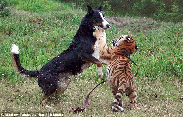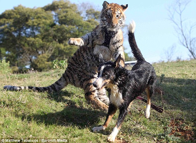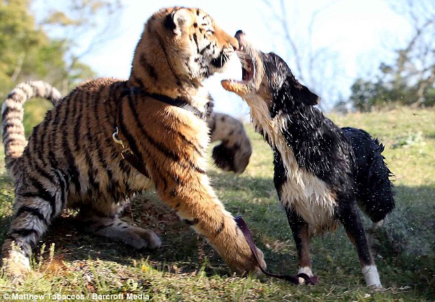 Забавно наблюдать, как в нем просыпается инстинкт пастушьей собаки: он собирает своих подопечных и ведет купаться. И здесь, забыв о том, что они кошки и не любят воды, тигрята с удовольствием барахтаются в озере», — рассказывает Эшли.
